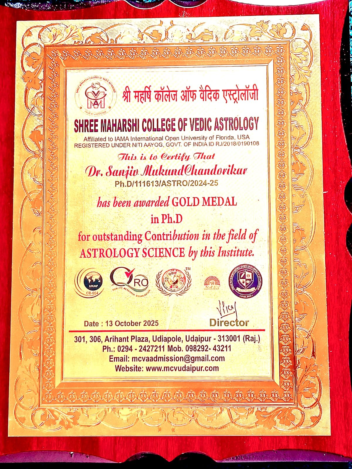Vidya Vachaspati Acharya Dr Sanjiv Mukund Chandorikar Address: 516, ’D’ Wing, Rajshivam Apt, Ashokvan, Dahisar (E), Mumbai 400068 Email: planetsoulgalaxy@gmail.com Mobile: 9819120332/8600251890 Date of Birth: 11 February […]